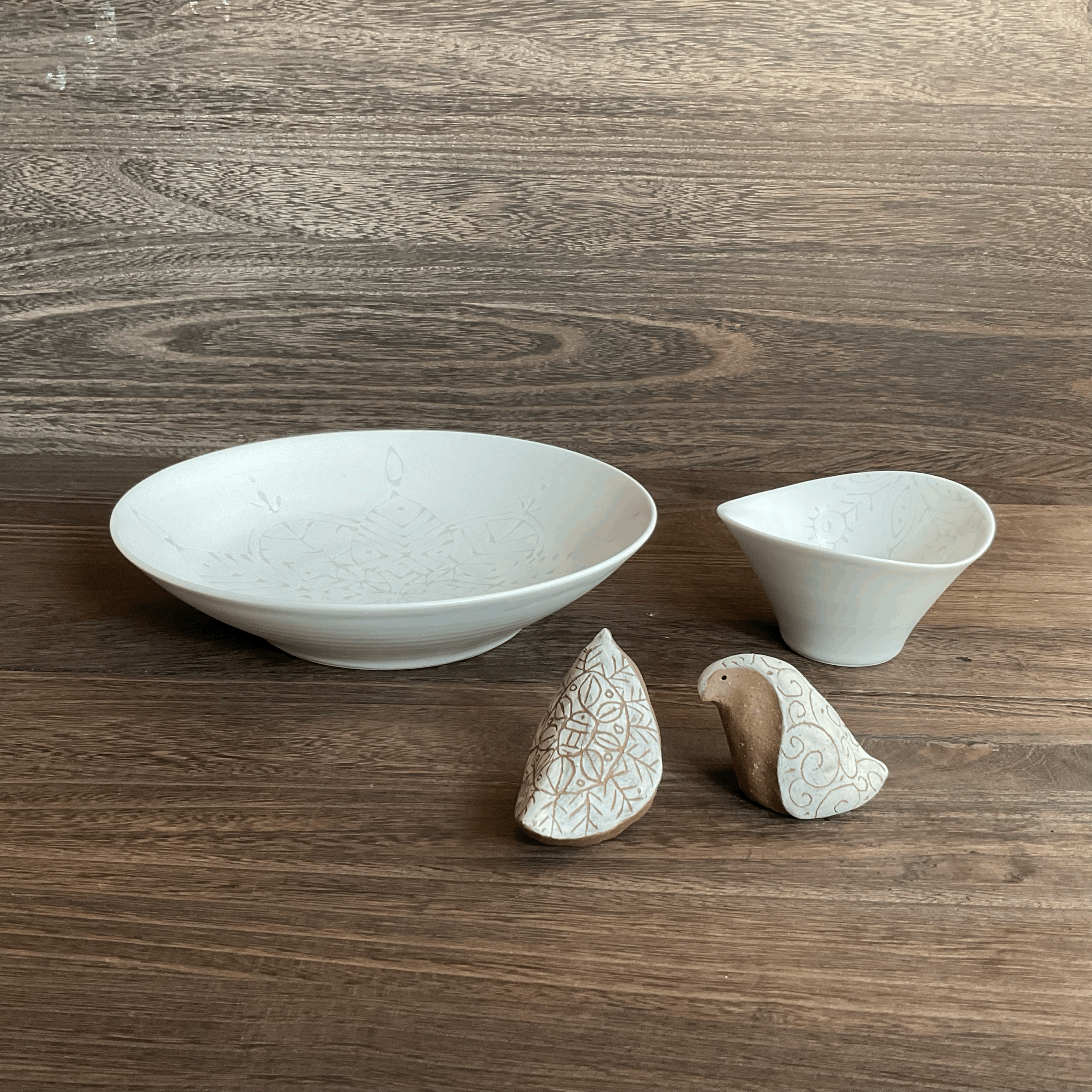 白レース 楕円大皿 ¥4,000 コバルトペンギン ¥4,000 しっぽマグ 白ネコ ¥3,500 さしむかいネコマグ ¥4,000 さしむかいイヌマグ 『マツ犬』マグ ¥4,000 コットン・メモリ マグ ¥4,000 しっぽマグ 黒ネコ ¥2,500
